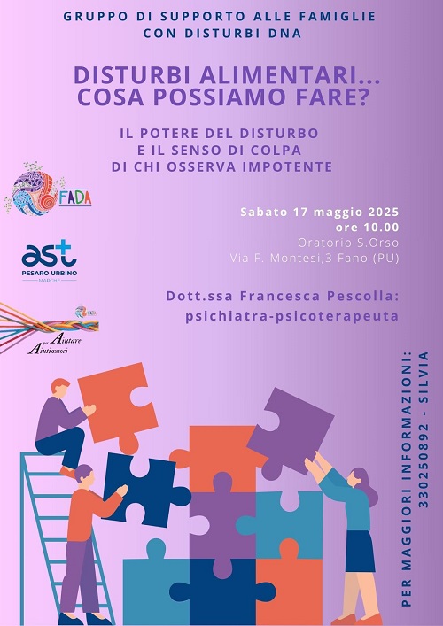 Nell’ambito delle iniziative legate ai disturbi alimentari, è in programma il 17 maggio 2025 a partire dalle ore 10 all’Oratorio San Orso di via Montesi 3 a Fano, un incontro organizzato dal gruppo di supporto alle famiglie dei pazienti con disturbi del comportamento alimentare (DCA).