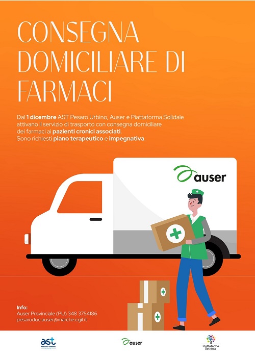 A partire dal primo dicembre l’Azienda Sanitaria Territoriale Pesaro Urbino e l’Associazione di volontariato provinciale Auser e Piattaforma Solidale attivano il servizio di trasporto con consegna domiciliare dei farmaci ai pazienti cronici associati.
