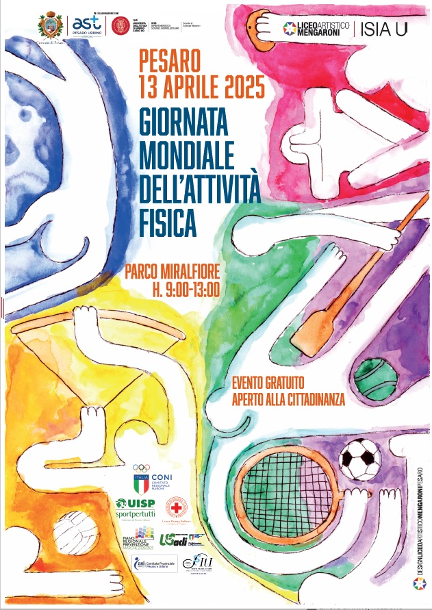 A breve il programma dell’iniziativa con tutte le attività proposte al Parco Miralfiore dalle 22 associazioni sportive aderenti all’evento. La locandina dell’evento è stata realizzata dal Liceo Artistico Mengaroni di Pesaro.