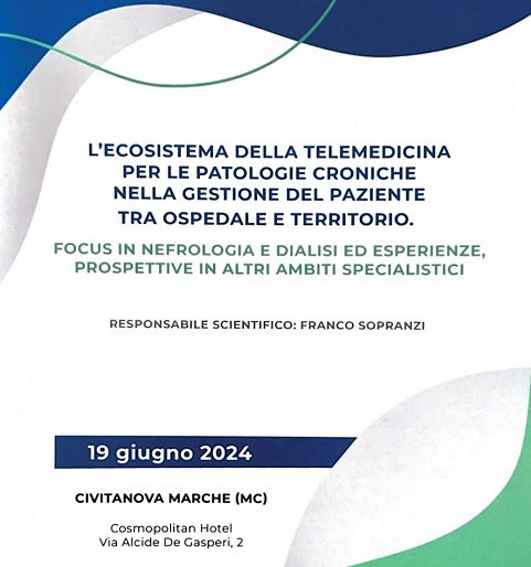 “L’ecosistema della telemedicina per le patologie croniche nella gestione del paziente tra ospedale e territorio. Focus in nefrologia e dialisi ed esperienze e prospettive in altri ambiti specialistici” è il titolo del convegno in programma il prossimo 19 giugno 2024 Civitanova Marche (Cosmopolitan Hotel – Via Alcide De Gasperi, 2).