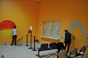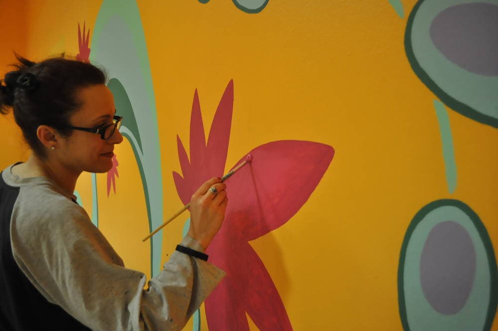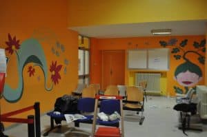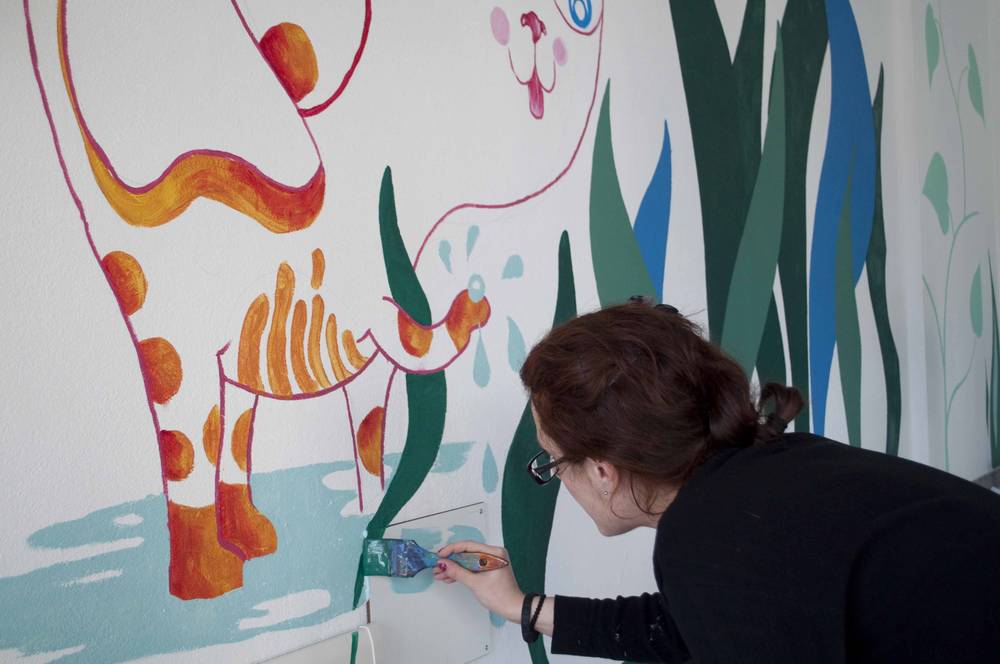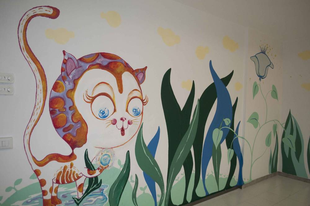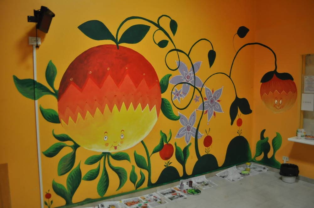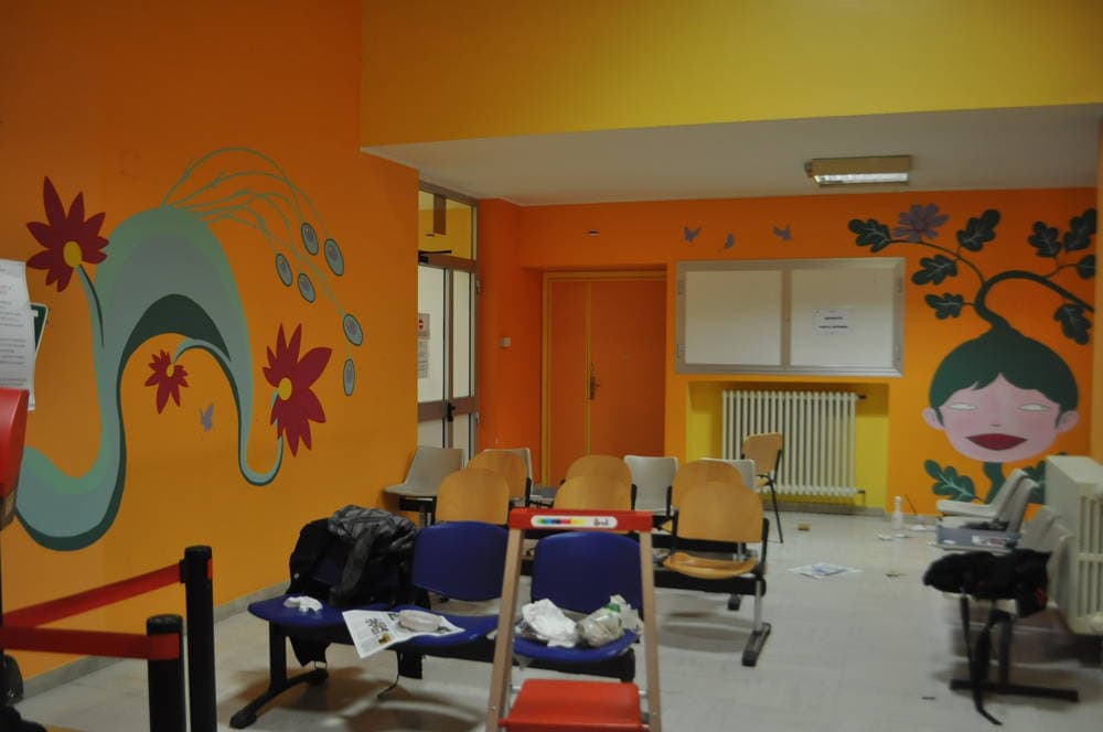 Ora il Poliambulatorio di Muraglia vibra di nuova luce grazie alla creatività del Collettivo Ruvida. L’idea è stata quella di creare negli spazi comuni del Poliambulatorio una sorta di foresta magica, animata da morbide figure animali che furtive si muovono tra le foglie di rassicurante e sinuosa natura. Dal salone delle casse, sbocciano sulle pareti pomodori giganti e farfalle, una natura leggiadra ed espressiva che sorride a chi passa.