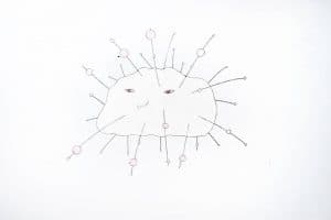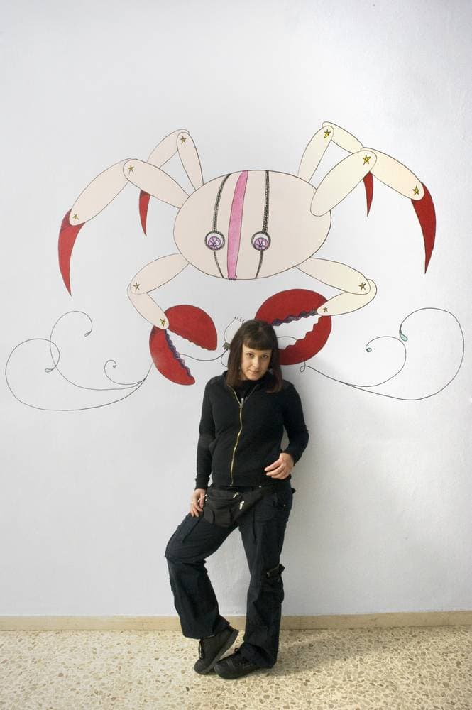 L’artista per questo intervento ha immaginato che il Mare Adriatico, su cui si affaccia la città di Fano, fosse trasportato con tutta la sua ricchezza di flora e di fauna dentro le mura dell’Ospedale.