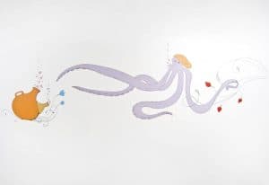 Si evince facilmente la seduzione che il fumetto ha esercitato sulla formazione dell’artista, le figure ridondanti nelle fattezze, la semplicità disarmante del segno ne sono i caratteri emblematici.
