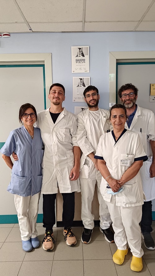 La premiazione è avvenuta durante il decimo congresso Europeo sull’ictus tenutosi a Basilea (ESOC 2024) il premio ESO-ANGELS Diamante per l’ultimo quadrimestre del 2023. E’ un importante riconoscimento per la lotta contro la malattia cerebrovascolare che rappresenta la seconda causa di morte e prima causa di invalidità a livello mondiale. In Italia ci sono 200.000 nuovi casi/anno di ictus – di cui circa l’80% è rappresentato da casi ischemici. L’iniziativa Angels racchiude una grande comunità di centri a livello mondiale specializzati nel trattamento acuto dell’ictus che lavorano ogni giorno per aumentare il numero di pazienti sottoposti a terapie riperfusive ed ottimizzare la qualità dei trattamenti effettuati. Tutti gli anni vengono monitorizzati numerosi parametri degli ospedali che partecipano (ad esempio il tempo necessario dall’arrivo in PS all’inizio della terapia fibrinolitica – door to needle) e in base alla performance effettuati vengono assegnati specifici premi (GOLD, PLATINUM, DIAMOND).