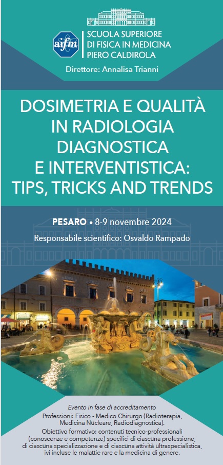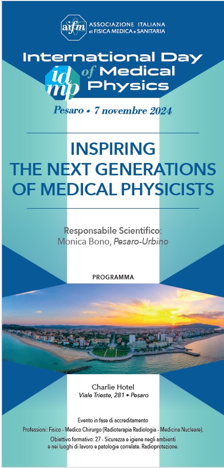 Due nuovi convegni in programma nel mese di Novembre a Pesaro, entrambi all’Hotel Charlie: il primo si terrà il 7 Novembre 2024 dal titolo “INSPIRING THE NEXT GENERATIONS OF MEDICAL PHYSICISTS”; il secondo l’8/9 Novembre 2024 dal titolo “DOSIMETRIA E QUALITÀ IN RADIOLOGIA DIAGNOSTICA E INTERVENTISTICA: TIPS, TRICKS AND TRENDS”.